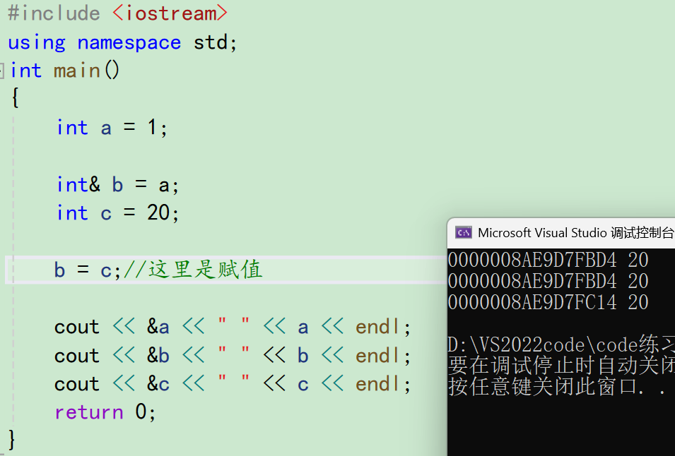 //ra++;//报错,不能给常亮赋值,const引用只能读,不能写int b = 20;