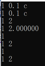 std::cout << a << " " << b << " " << "c" << std::endl;