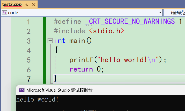C++兼容C语⾔绝⼤多数的语法,所以C语⾔实现的hello world依旧可以运⾏,C++中需要把定义⽂件代码后缀改为.cpp,vs编译器看到是.cpp就会调⽤C++编译器编译,linux下要⽤g++编译,不再是gcc