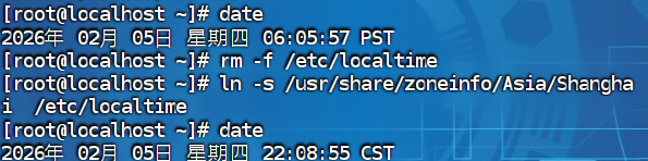 将系统自带的localtime文件删除,并将/usr/share/zoneinfo/Asia/Shanghai文件链接为localtime文件即可