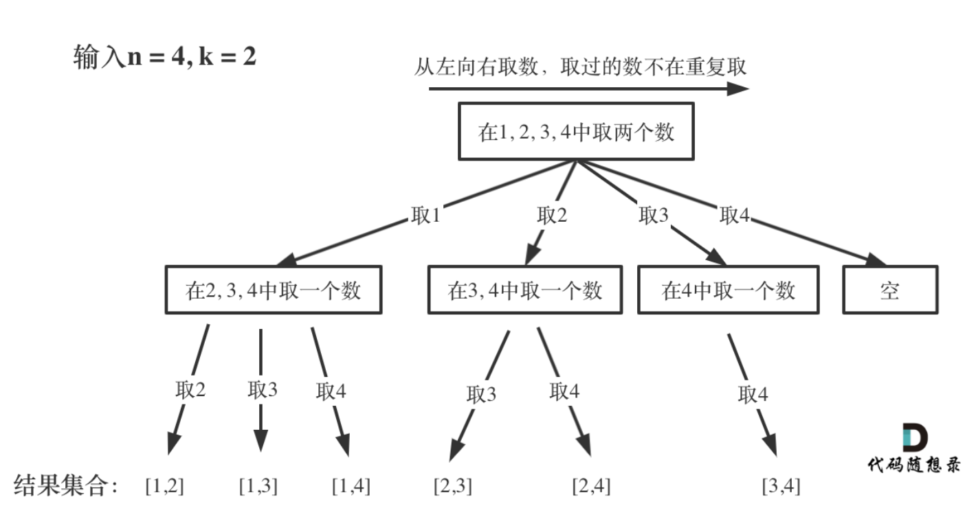 在集合n中至多要从该起始位置 : i <= n - (k - path.size()) + 1,开始遍历