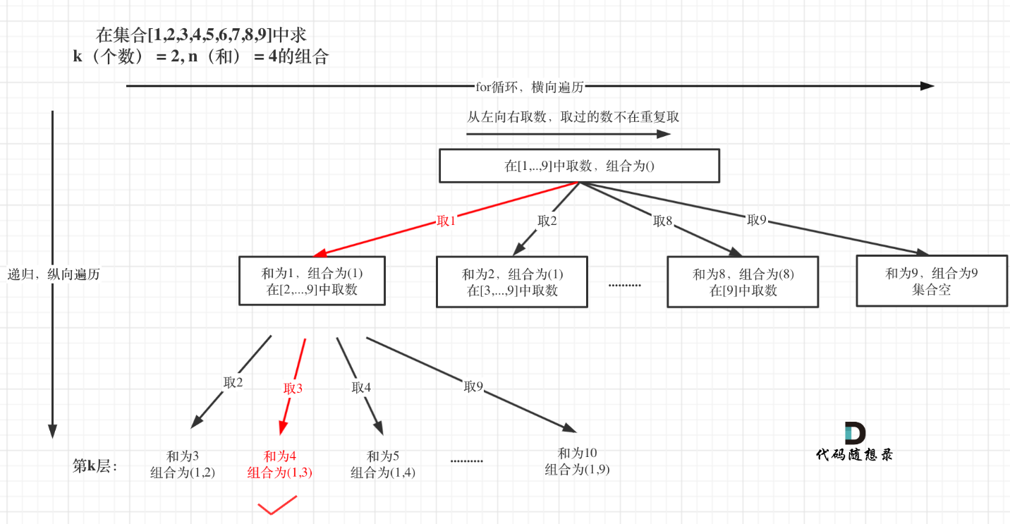 // 2. 9 - (k - path.size()) + 1:保证从i开始还有足够的数字选够k个(比如k=3,path.size()=1,还需选2个,i最大只能是8,因为8、9刚好2个)