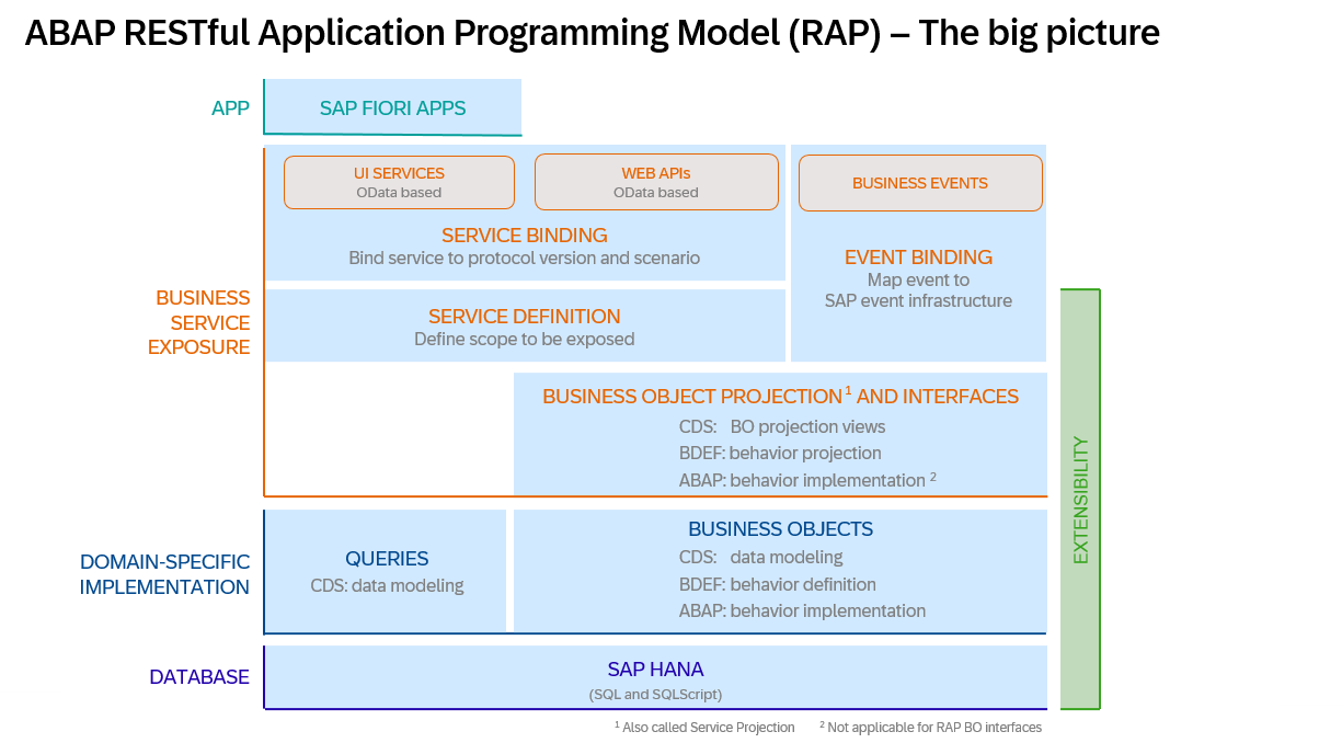 根据SAP官方的Big Picture,RAP架构分为数层,最简单的RAP报表(即只实现Query而没有Business Object的操作)只需要设计CDS Data Model, CDS Projection view, Service Definition, Service Binding即可,行为定义的部分后面再补充