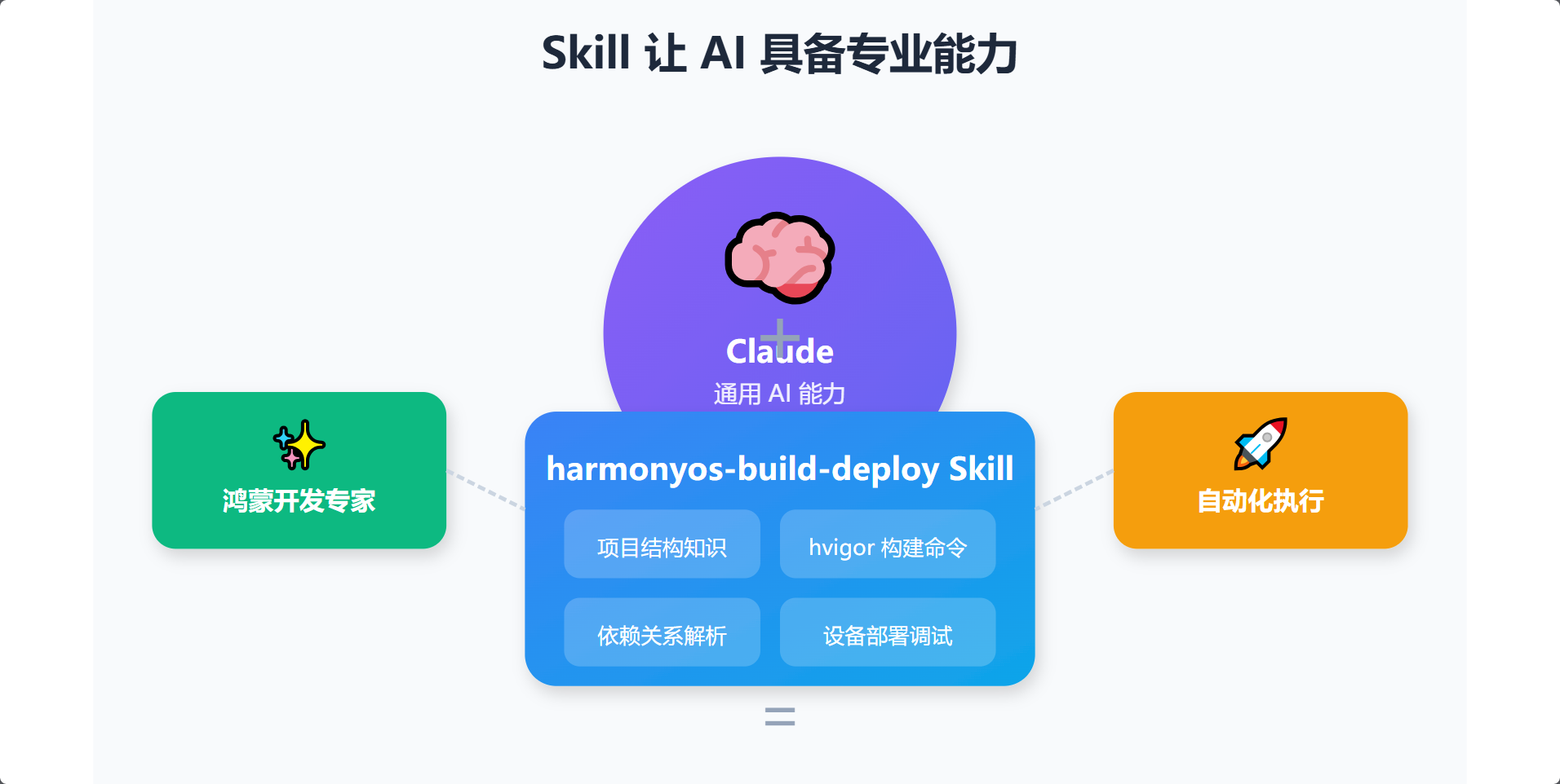 当你安装了 harmonyos-build-deploy Skill 后,Claude 就具备了: