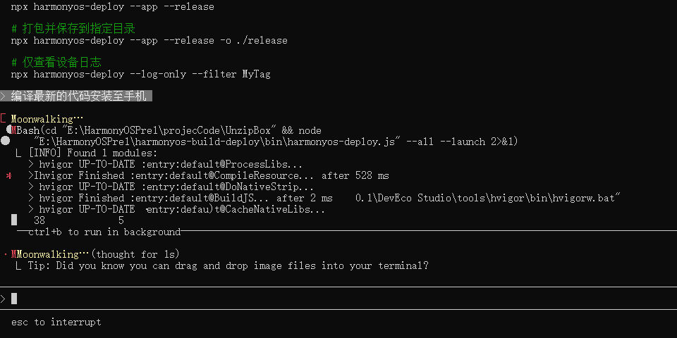 npx harmonyos-deploy --all --launch - 等待编译完成,处理可能的错误