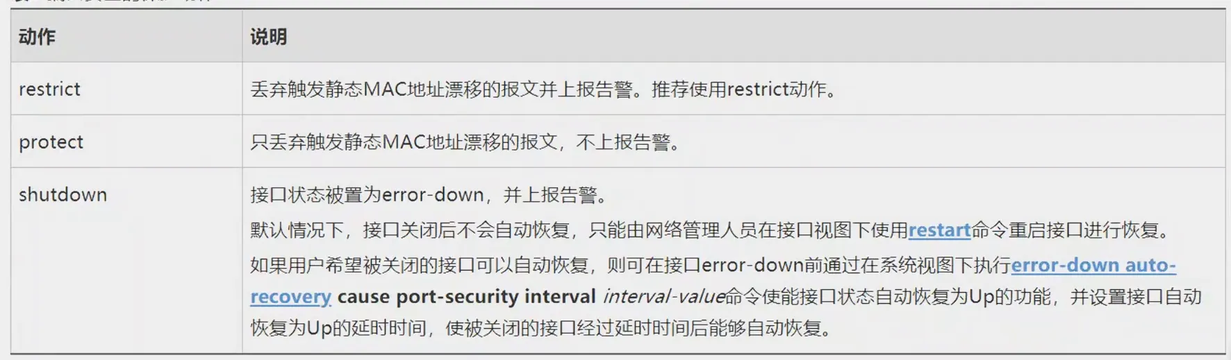 如果收到报文的源MAC地址已经存在在其他接口的静态MAC表中,交换机则认为存在静态MAC地址偏移,则会执行以下其中一种动作