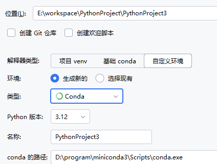我的pycharm最高支持3.12的,安装的conda是py313的