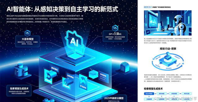 往技术达成角度瞧,当下AI智能体的蓬勃兴起是因多项关键技术的趋于成熟。大语言模型给出了强大的通用知识底蕴以及语言理解与生成本领,变成了智能体推理的核心引擎。在2023年发布的GPT - 4模型参数量大概是1.8万亿,然而到2025年,一些前沿模型的参数量已然突破10万亿量级,其代码、数学以及逻辑推理能力明显提高。基于此,智能体框架如、等,借助引入"规划-行动-观察"的循环机制,得以让大模型能够独立自主地管理繁复的任务流程。另外,检索增强生成技术具有有效缓解大模型"幻觉"问题的作用,它是通过在可信知识库中实时检索知识进行信息获取,以此来支撑生成内容的准确性。在多模态范畴,视觉-语言模型的发展致使智能体能够对图像、视频内容进行理解与生成,进而进一步把应用边界予以扩展。