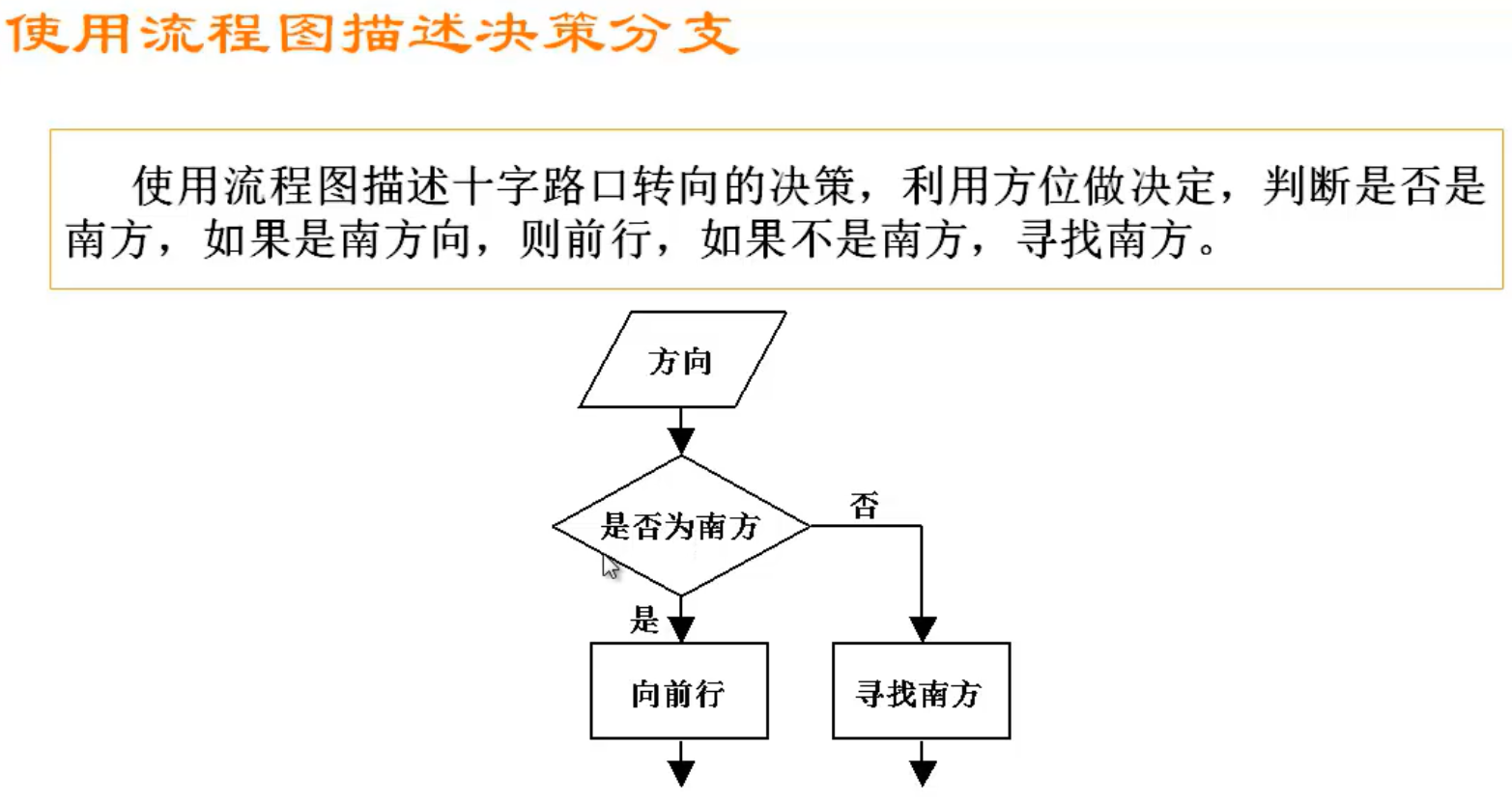 使用流程图描述决策分支例子:
