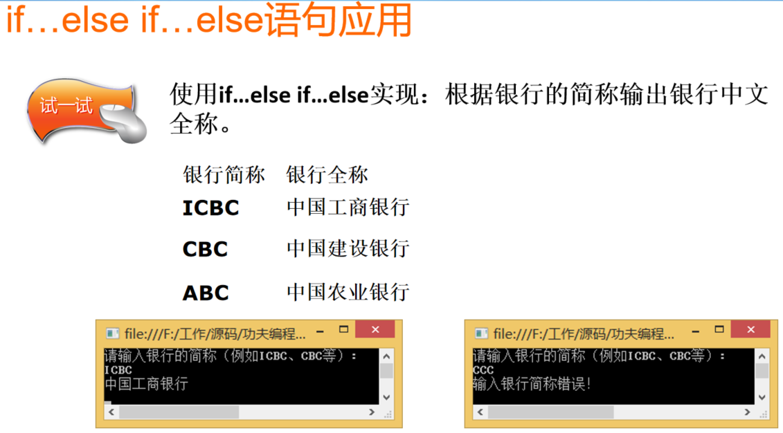 Console.WriteLine("中国工商银行"); //输出中国工商银行