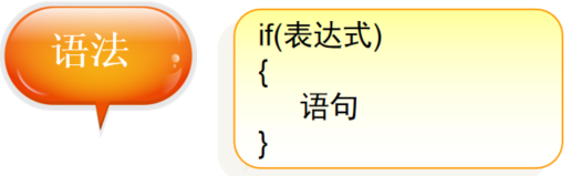 执行流程:判断表达式值如果是真的话执行大括号里面的语句,如果是假直接跳过大括号里面的语句执行下一条语句 -最简单if语句形式 汉语:如果...那么
