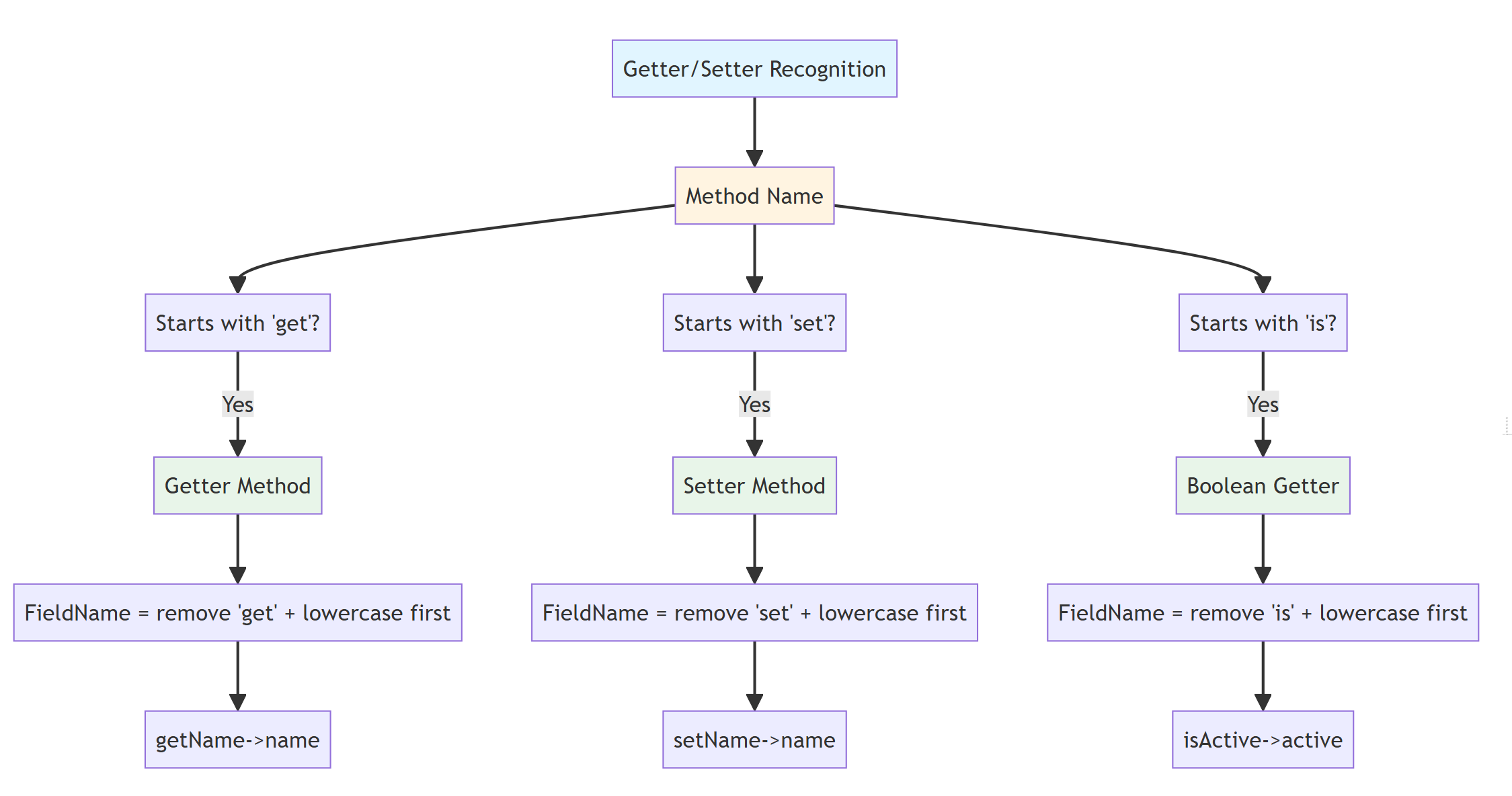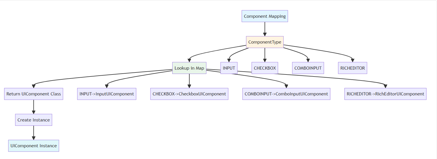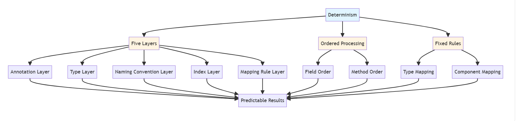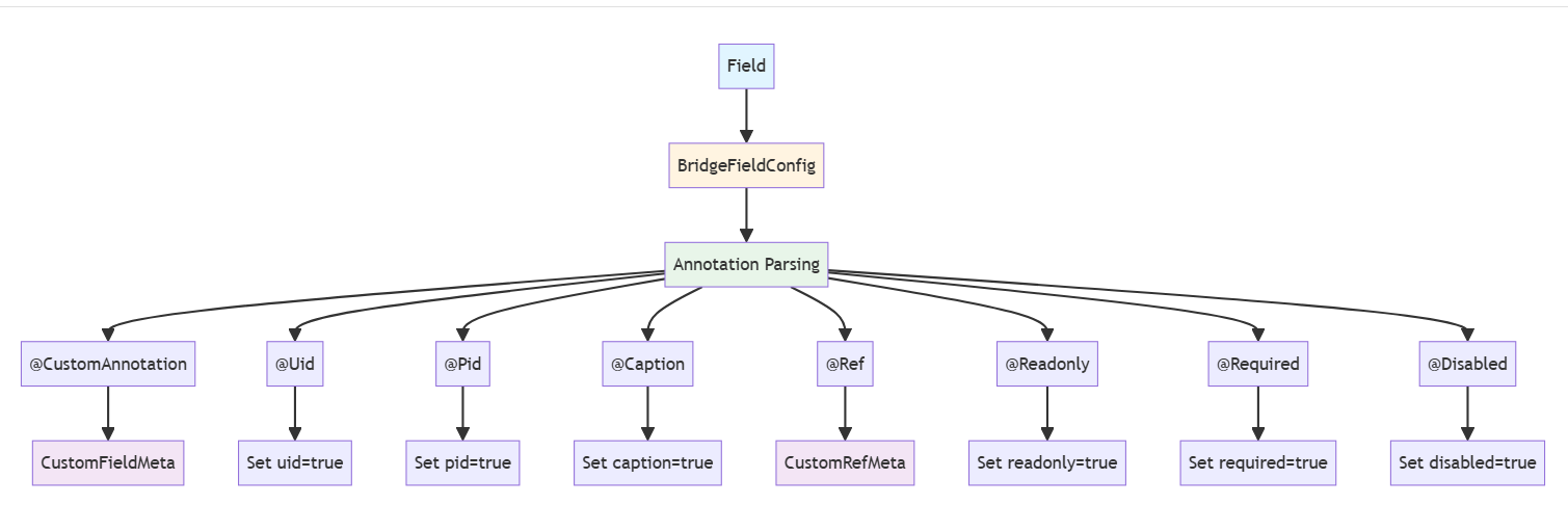 A2UI的拆解机制基于注解驱动的反射分析,通过多层次的抽象和映射,将Java类转换为UI组件。整体架构如下: