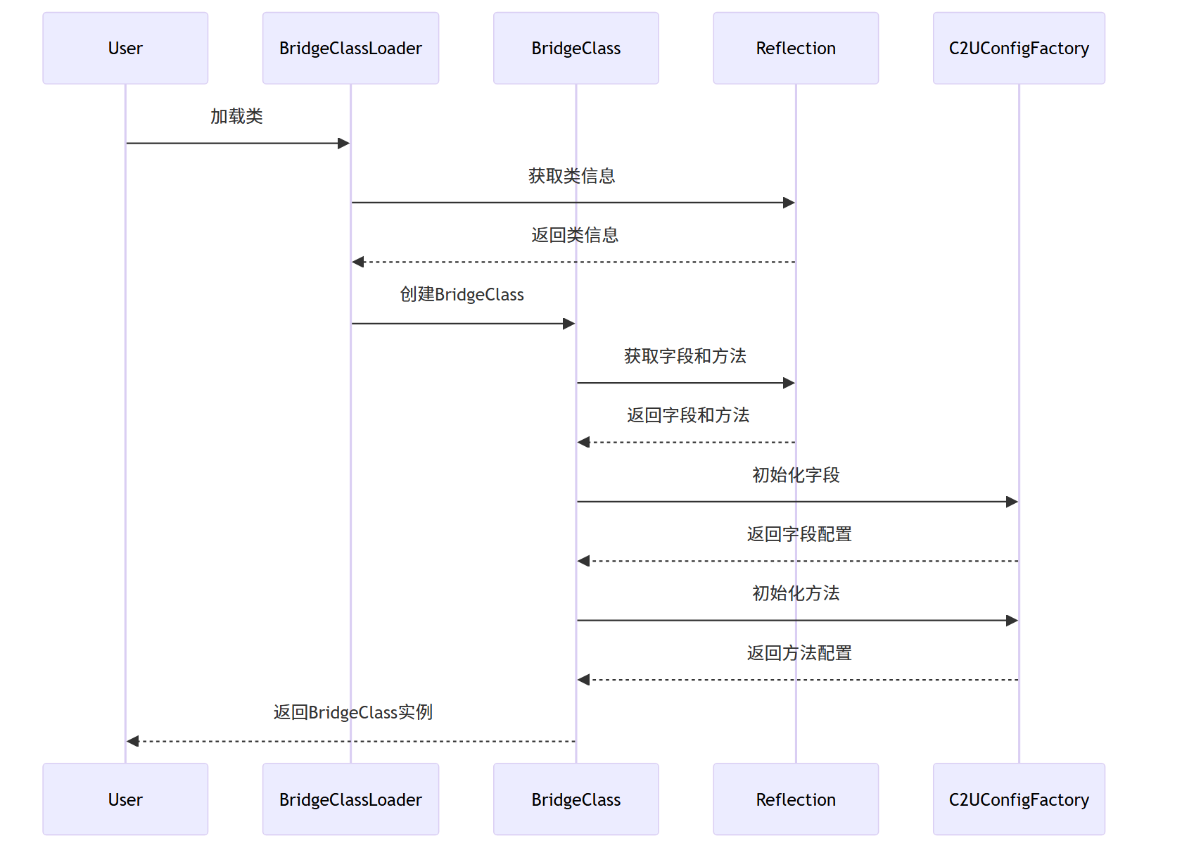 ReflectionClassLoaderBridgeClassUserReflectionClassLoaderBridgeClassUser创建BridgeClass加载Java类获取类信息返回类信息返回类对象获取所有字段返回字段列表获取所有方法返回方法列表返回BridgeClass实例