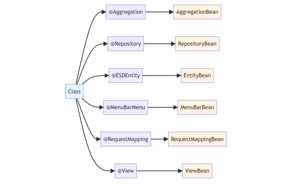 A2UI(Annotation to UI)是Ooder框架的核心组件,通过注解驱动的反射分析,将Java类自动转换为UI组件。其核心逻辑包括: