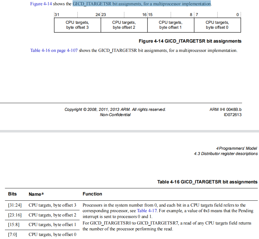 GICD_ITARGETSR bit assignments, for a multiprocessor implementation