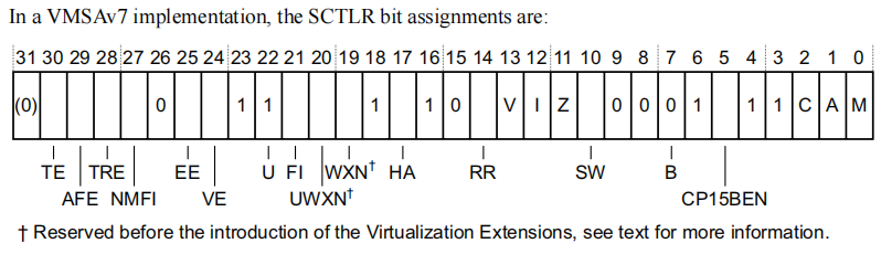 SCTLR是ARMv7架构中最重要的系统控制寄存器,控制着处理器的核心行为,包括MMU、缓存、对齐检查等