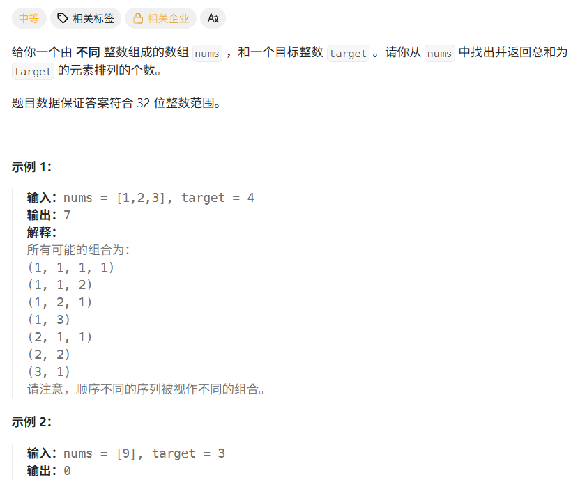 https://leetcode.cn/problems/combination-sum-iv/description/