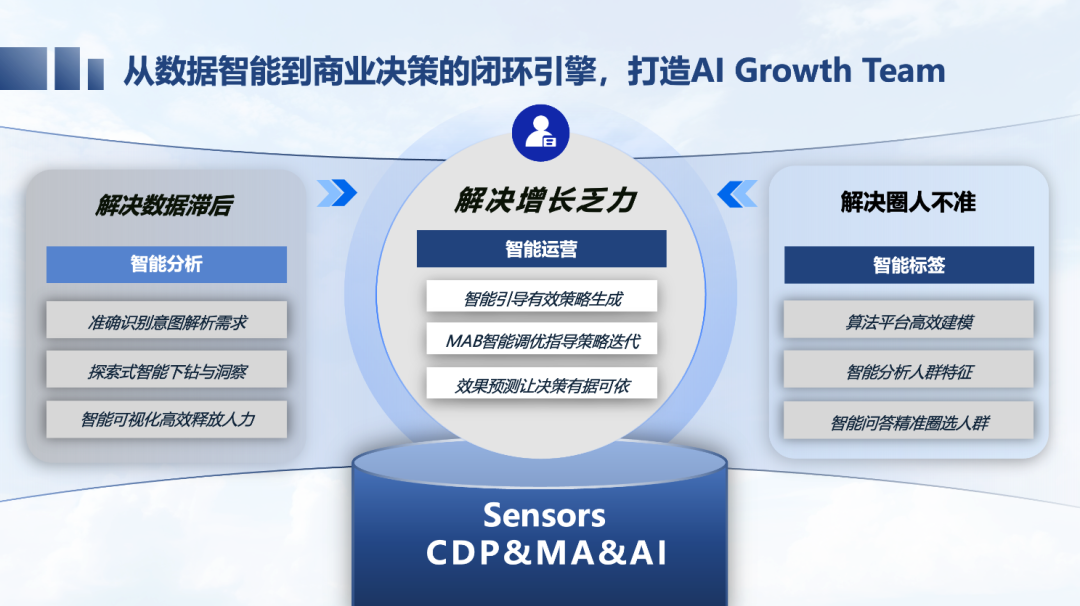 围绕用户经营,常见的挑战主要集中在三点:第一,用户洞察不够及时、不够准确;第二,人群圈选和分层不精准;第三,增长策略难以持续优化。