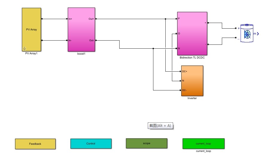 这个仿真模型是闭环控制的,它具备功率调度和充放电控制的强大功能。功率调度可以根据不同的场景需求,合理分配光伏产生的电能以及储能系统的充放电功率。