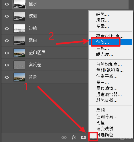 创建新的填充或调整图层",添加色阶调整图层;