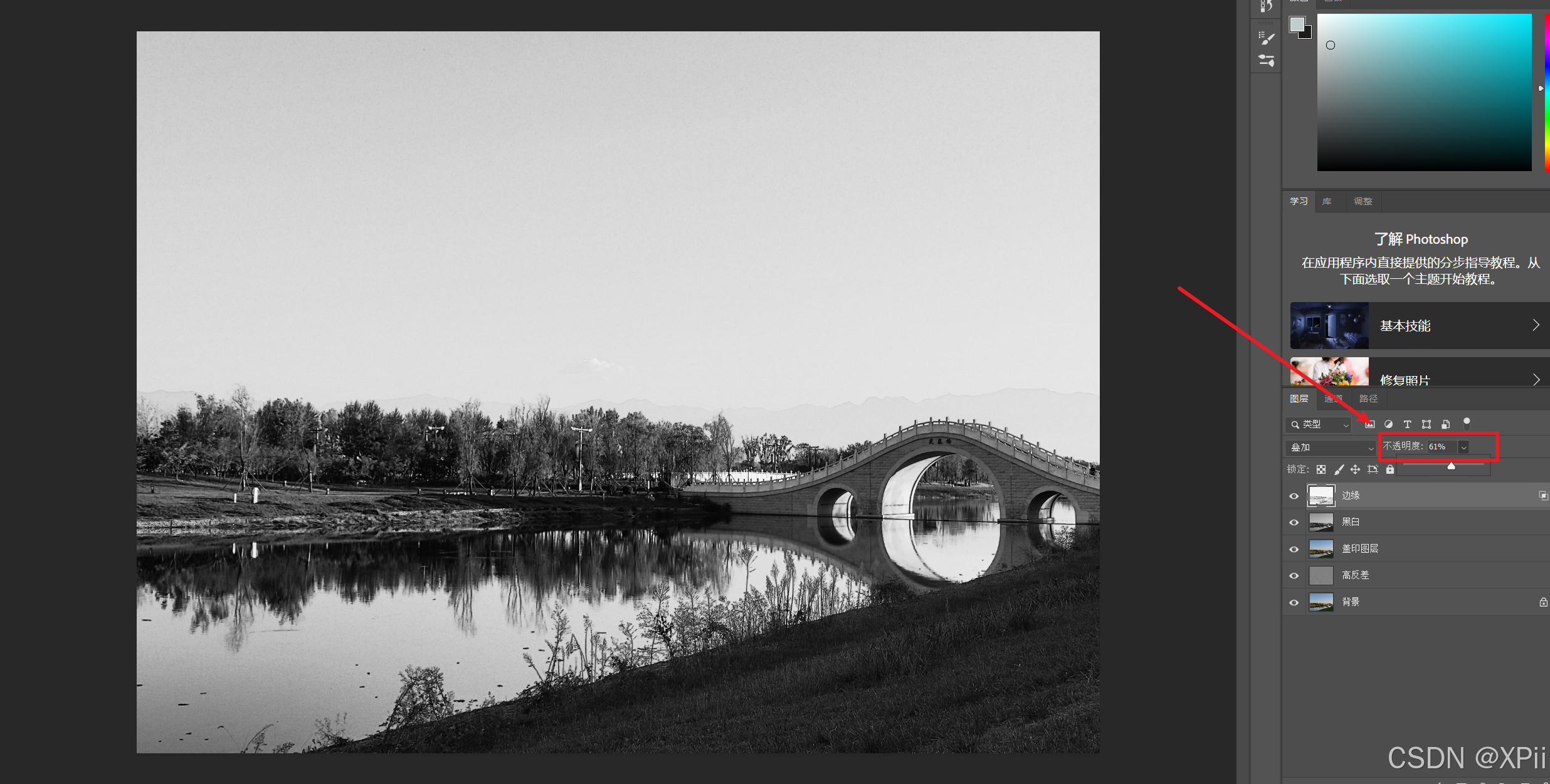 边缘图层的不透明度改为61%;