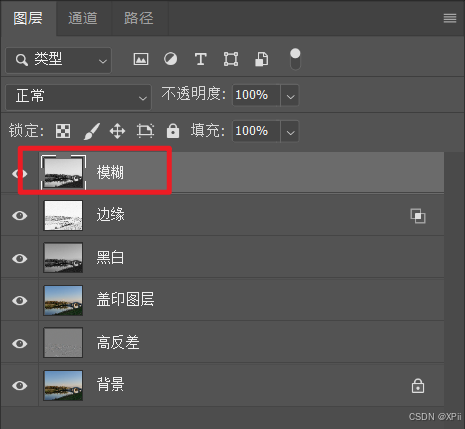 Ctrl+Shift+Alt+E,对图层进行盖印,并将其重命名为模糊图层;