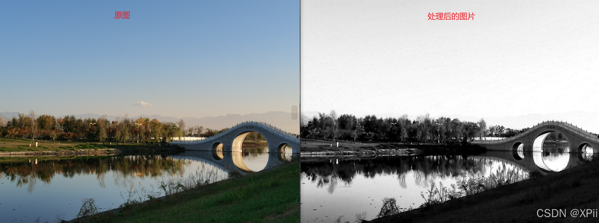 有时候需要得到水墨画效果的图像,采用Photoshop可以很方便实现该功能,如下图所示: