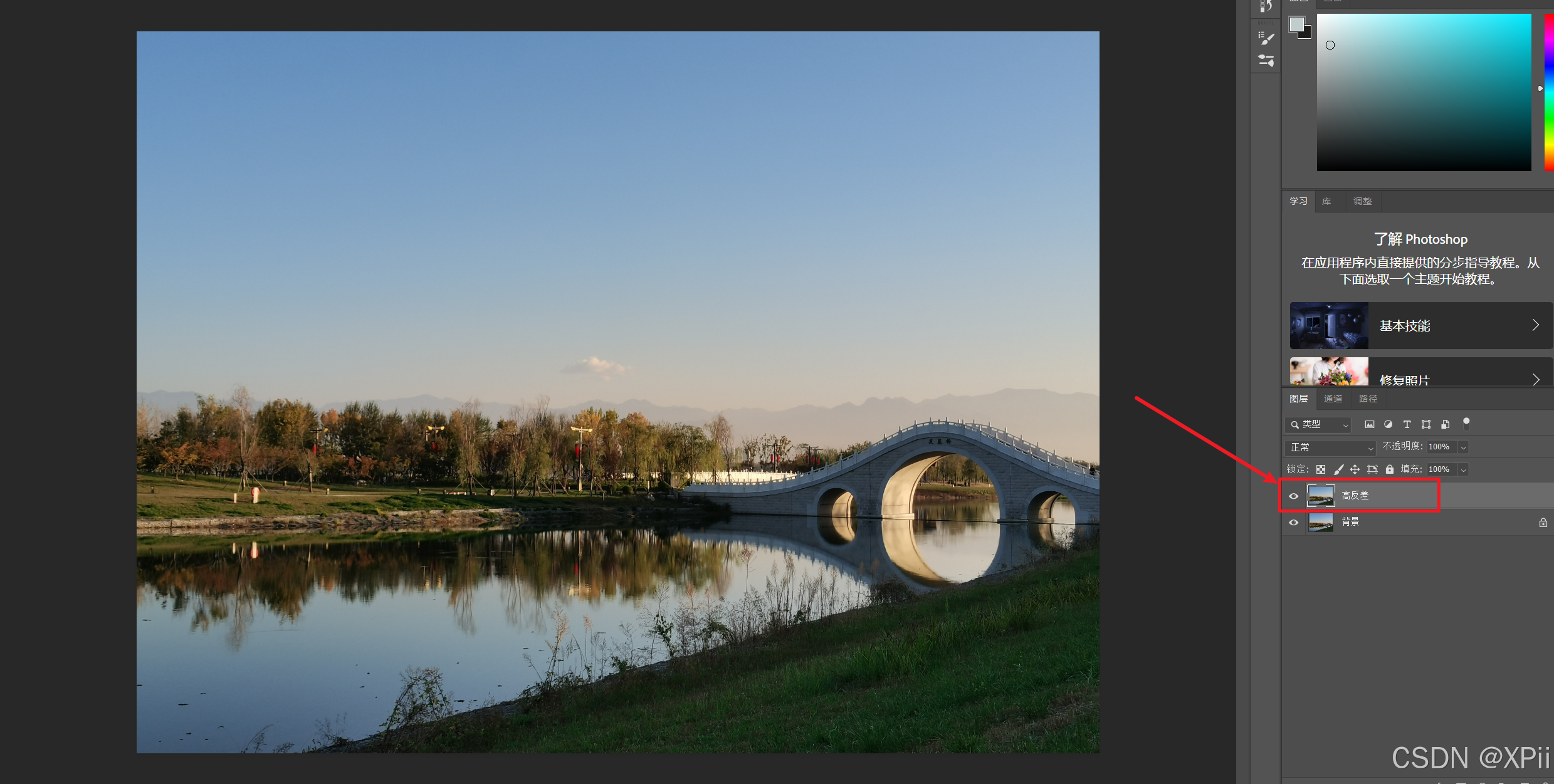 - 高反差处理(1):打开要调整的照片,复制背景图层;