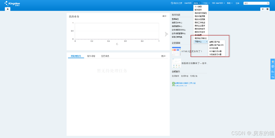 客户端无独立安装包,用户可以直接通过IE访问企业部署好的业务站点,登录到系统,在主界面用户个人信息下选择需要的客户端和设计平台。