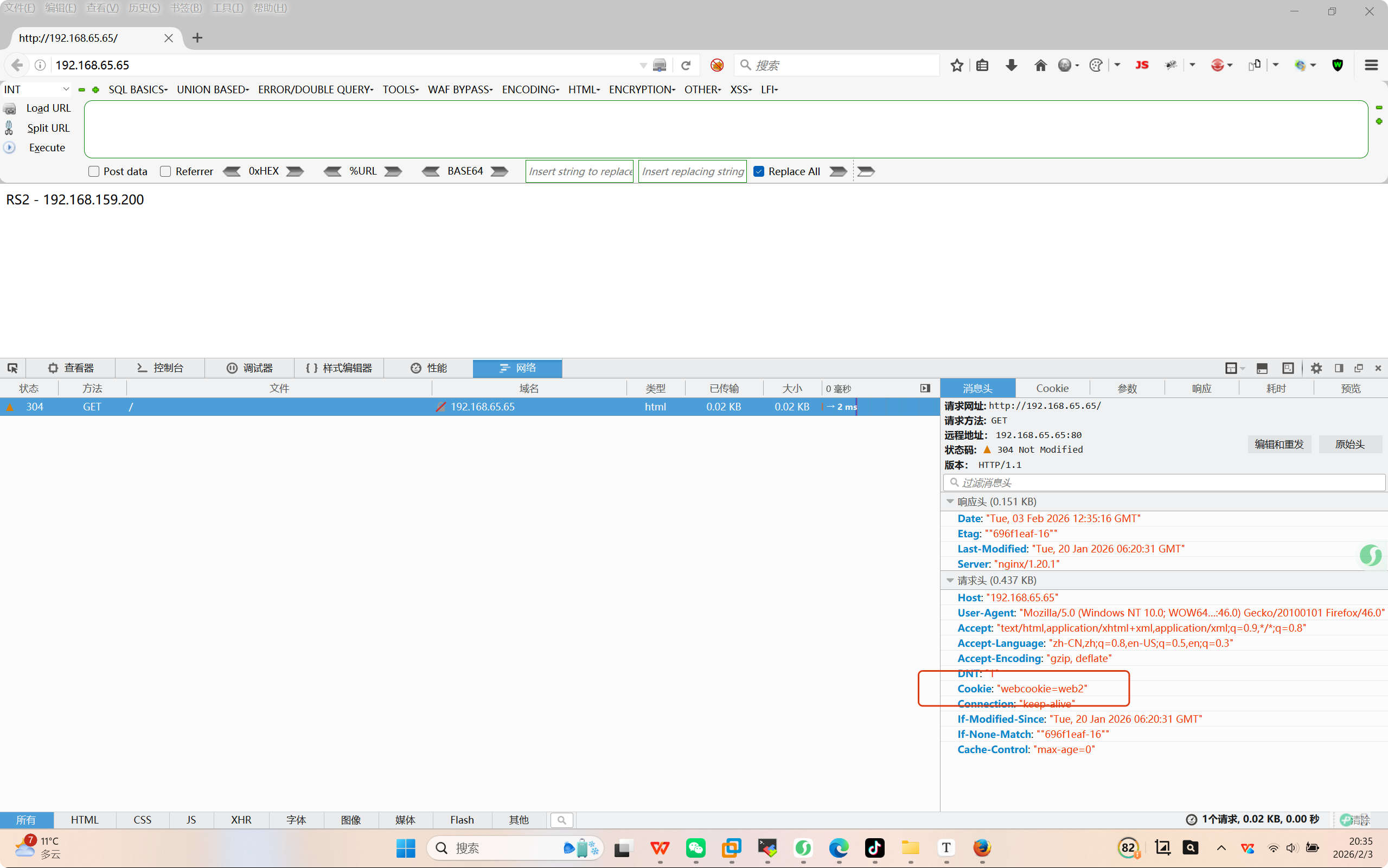 [root@webserver ~] curl -b webcookie=web2 192.168.65.65
