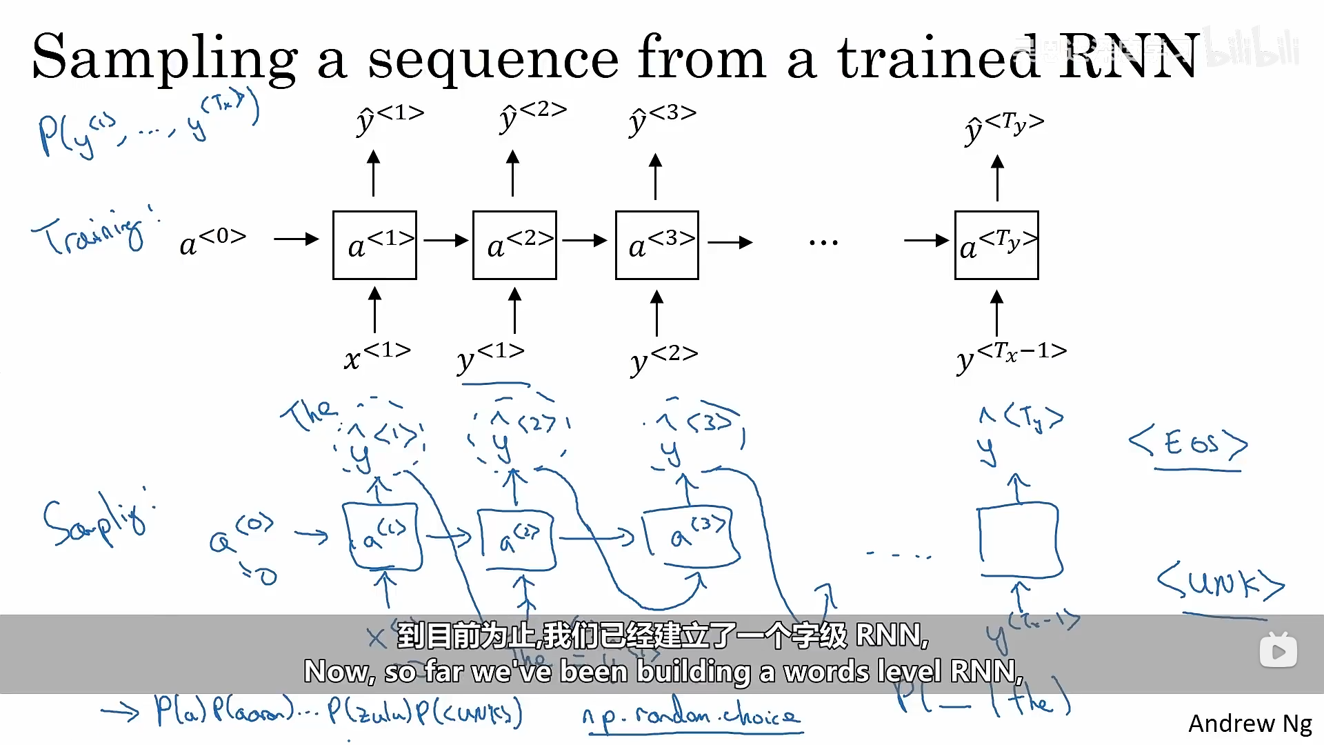 下面图像中的蓝色箭头表示了循环神经网络的正向传播,红色箭头则代表循环神经网络的反向传播。