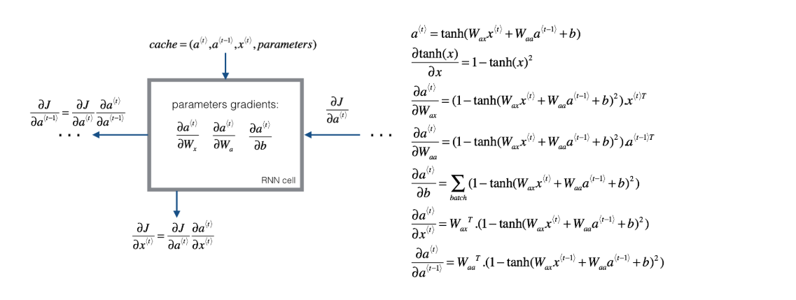 da_prev = gradients_t["da_prev"] # 更新da_prev,供前一个时间步(t-1)使用