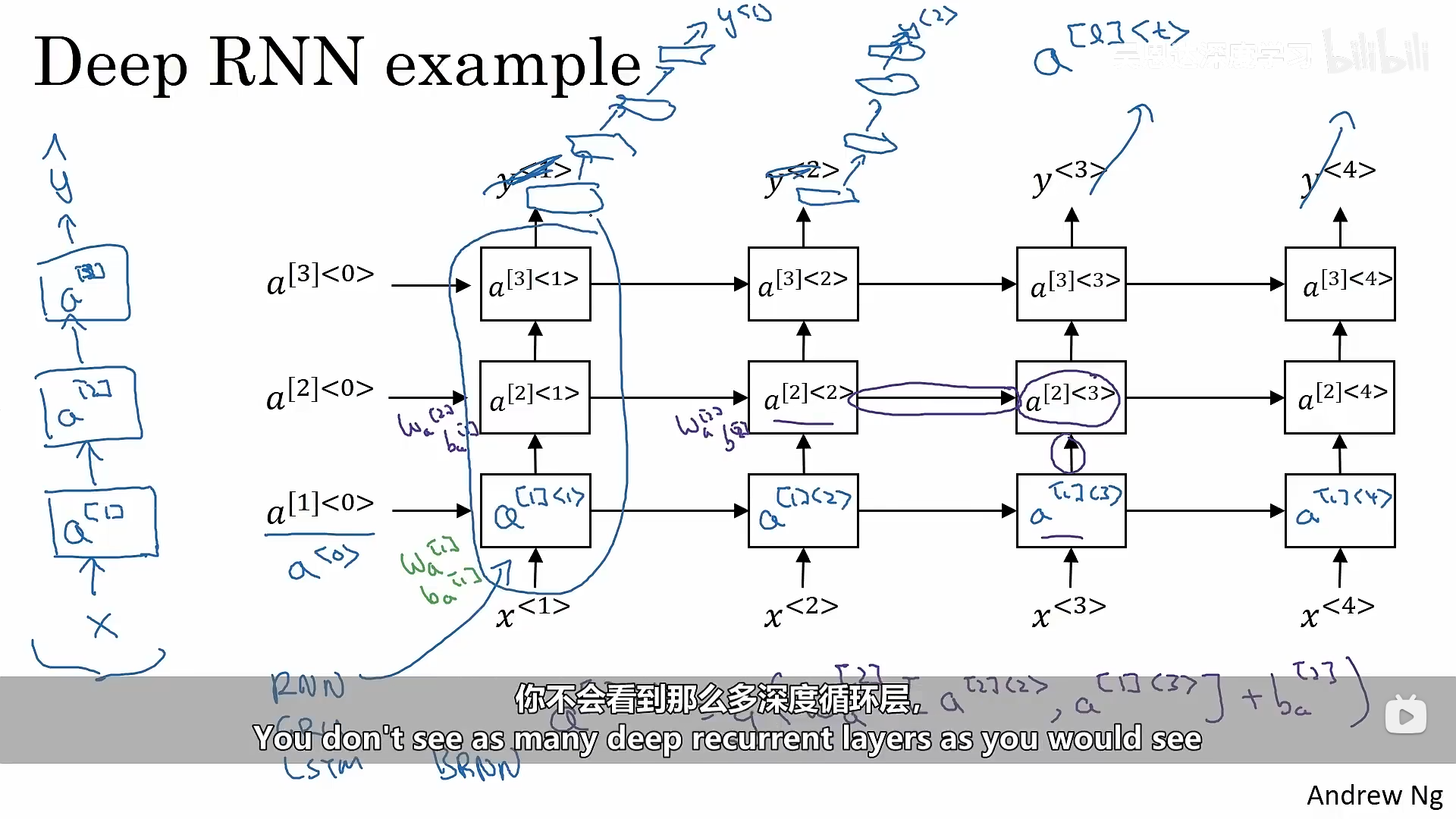 深度RNNs意味着一层神经网络还有很多层激活层:
