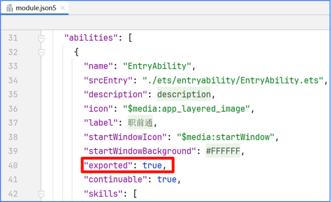 第一步:配置应用接续能力,module.json5文件,核心代码如下: