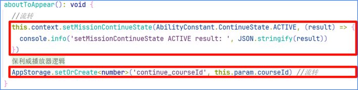 第三步:在课程播放页开启接续能力,进入页面打开流转能力,coursePlayView.ets文件,核心代码如下: