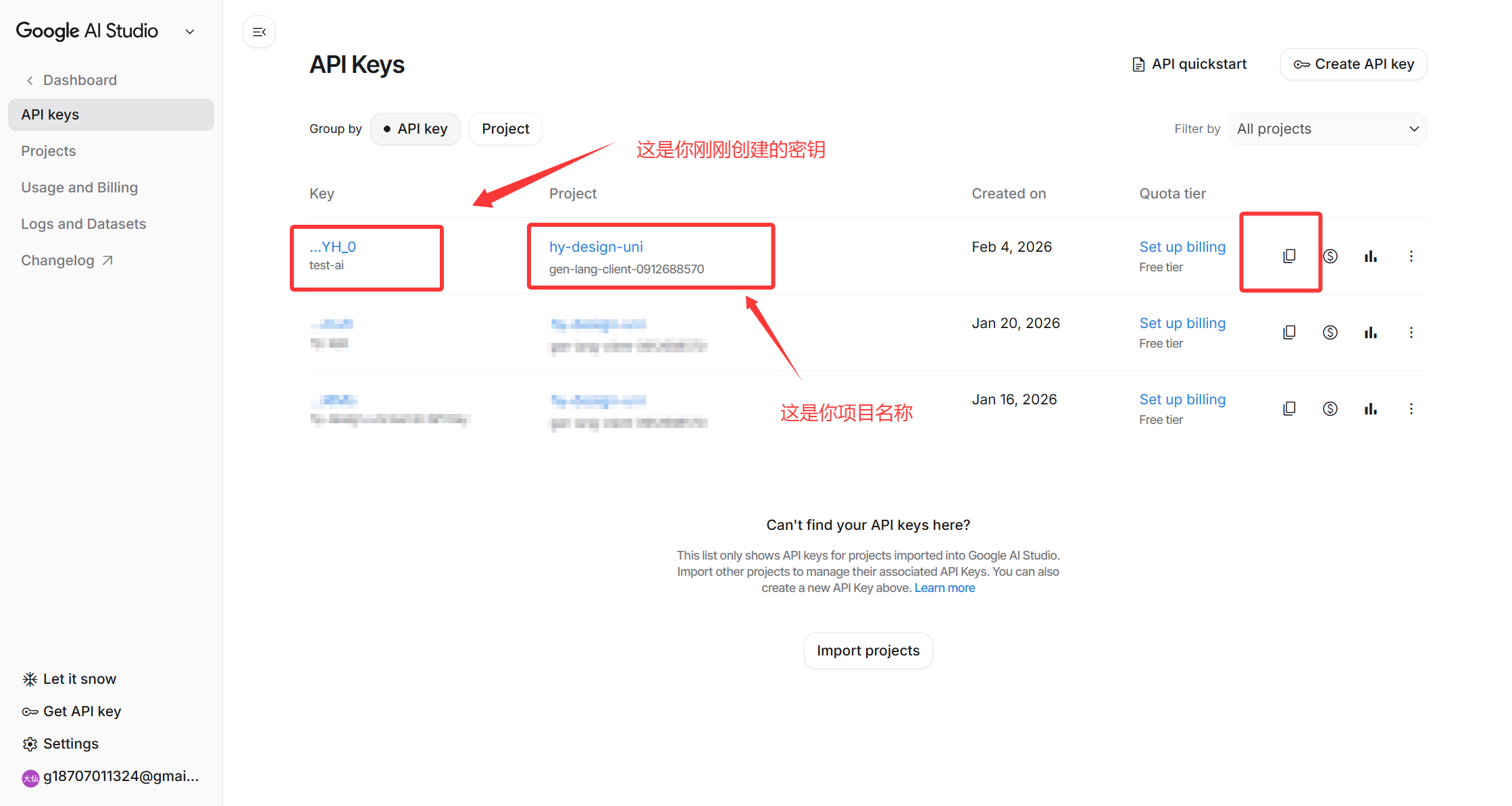 AI 助手需通过 API Key 调用 Gemini 模型能力,步骤如下: