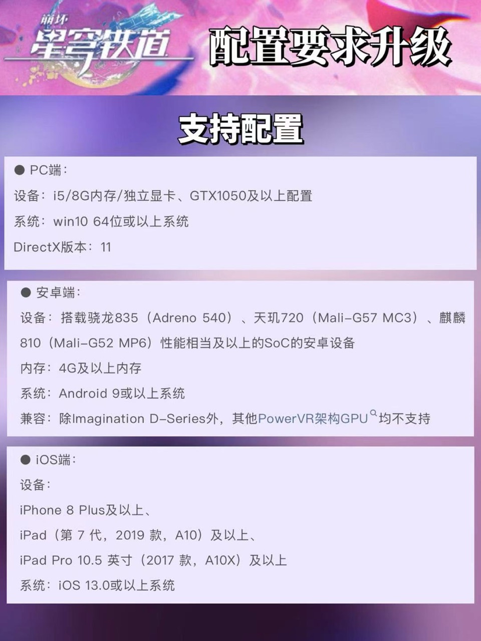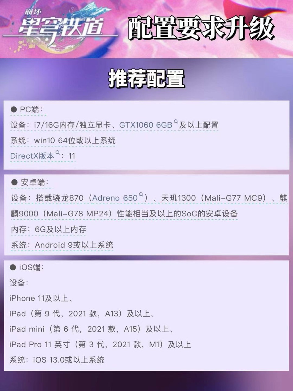 崩铁官方早已发布设备性能要求调整预告📢将会在4.0版本中提升对设备性能的要求,低于支持配置的设备游玩稳定性会变差❌