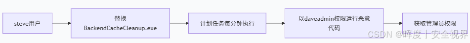 攻击核心 :利用用户对高权限任务执行文件的完全控制权 ,通过文件替换 实现权限提升。这是典型的计划任务配置不当导致的提权漏洞。