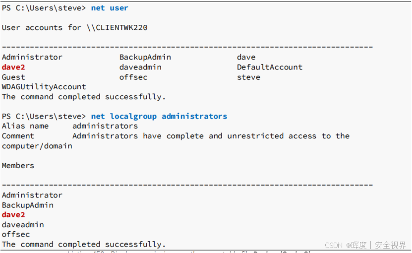 | 执行后 | 创建dave2用户 | net user dave2 |