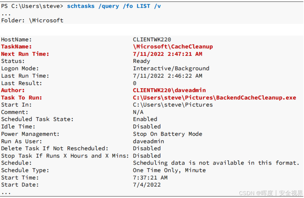 > schtasks /query /fo LIST /v