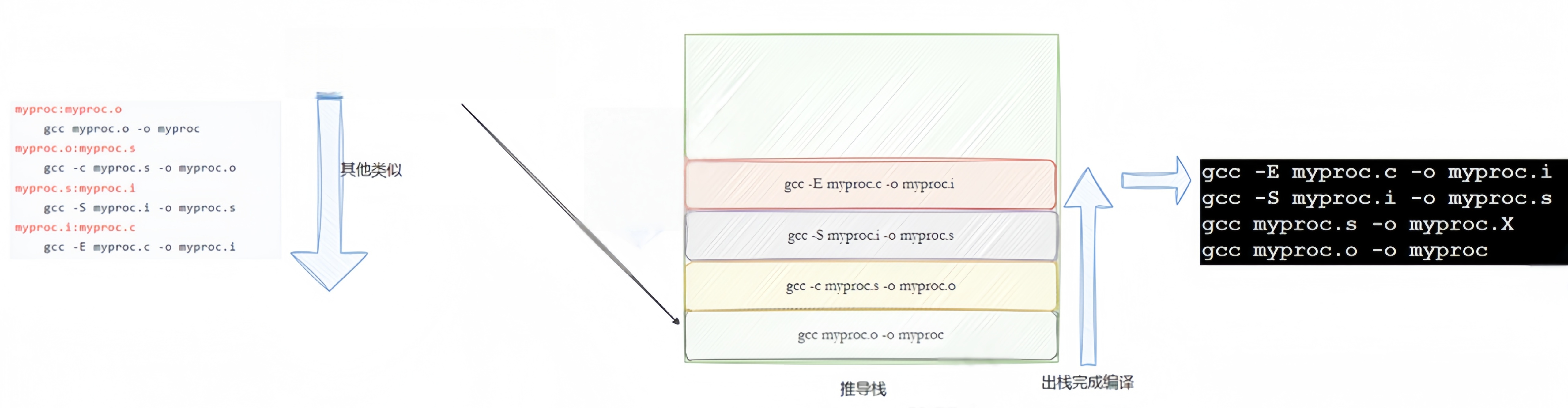 依赖⽅法---gcc -o myproc myproc.c,就是与之对应的依赖关系.