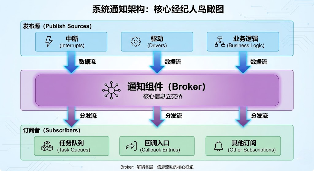 - "通感"需求强烈: 多个模块对"同一件事"感兴趣。比如"系统掉电"这件事,文件系统要存盘,电机要急停,UI 要黑屏,Log 要记录。