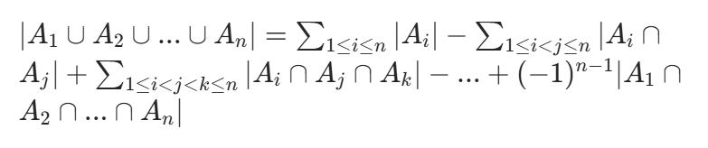 - 规律:奇数个集合的交集相加,偶数个集合的交集相减,直到最后一个 n 个集合的交集(符号为