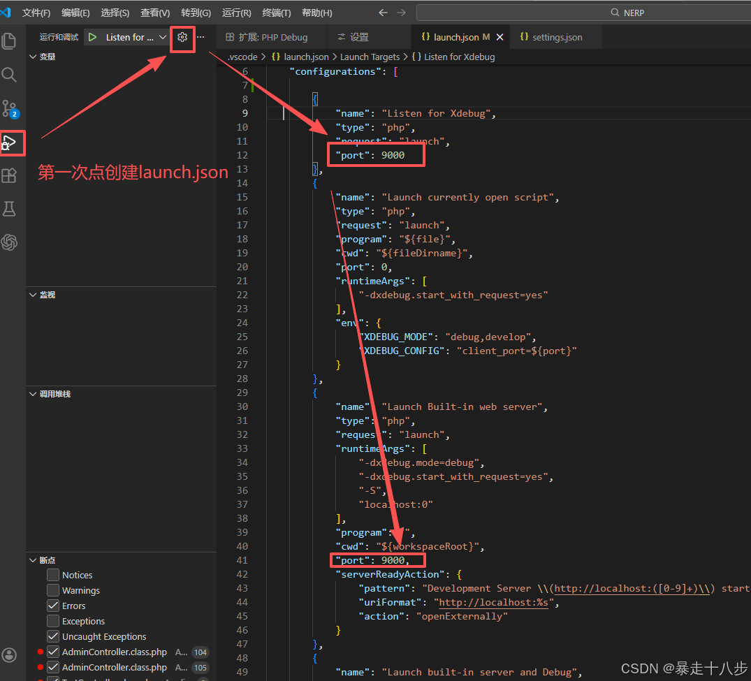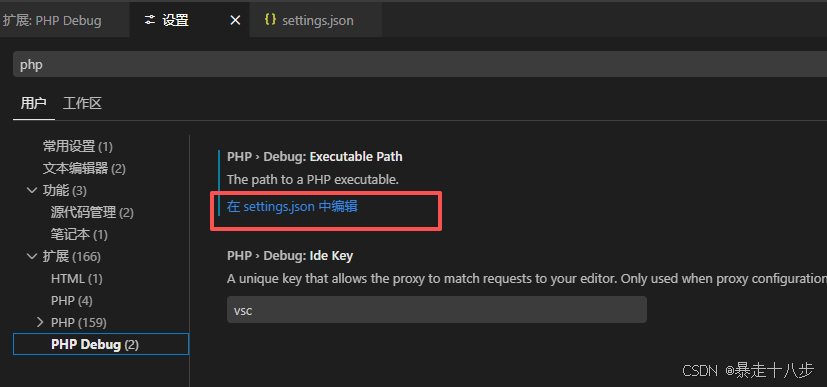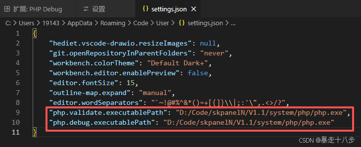 - php和php debug的setting.json在一个地方,可以一起设置了,注意需要反斜杠