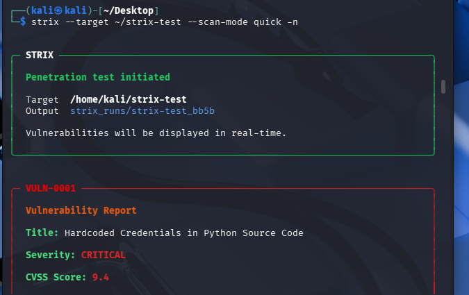 strix --target ~/strix-test --scan-mode quick -n