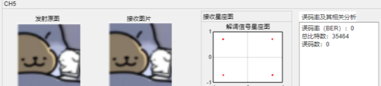 查看结果: 对比发射原图与接收图片 ,检查星座图收敛情况 ,确认误码率指标 ------三个维度都达标,实验成功!