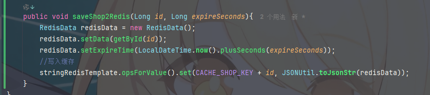 stringRedisTemplate.opsForValue().set(key, JSONUtil.toJsonStr(redisData));