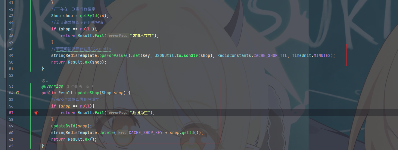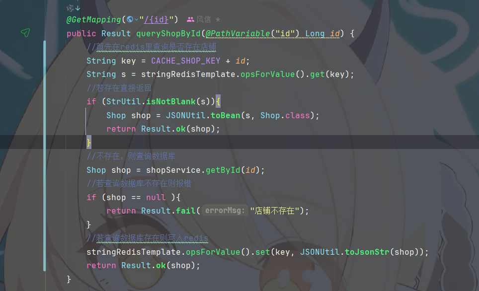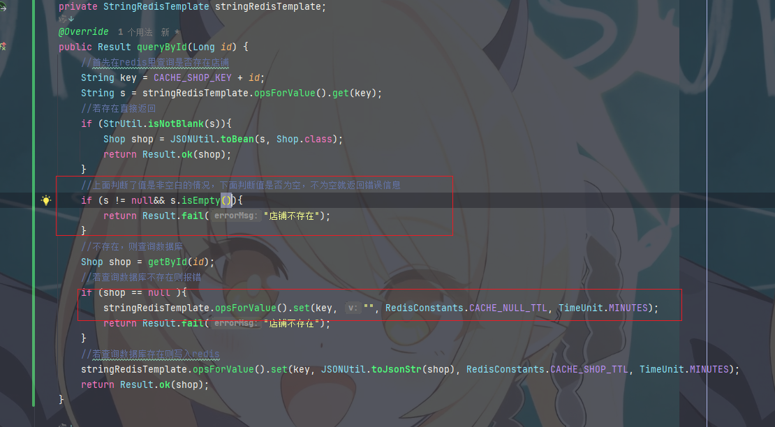 在存入redis后,异常请求就会get到value值为"",就会访问第一红框的if,就会是店铺不存在
