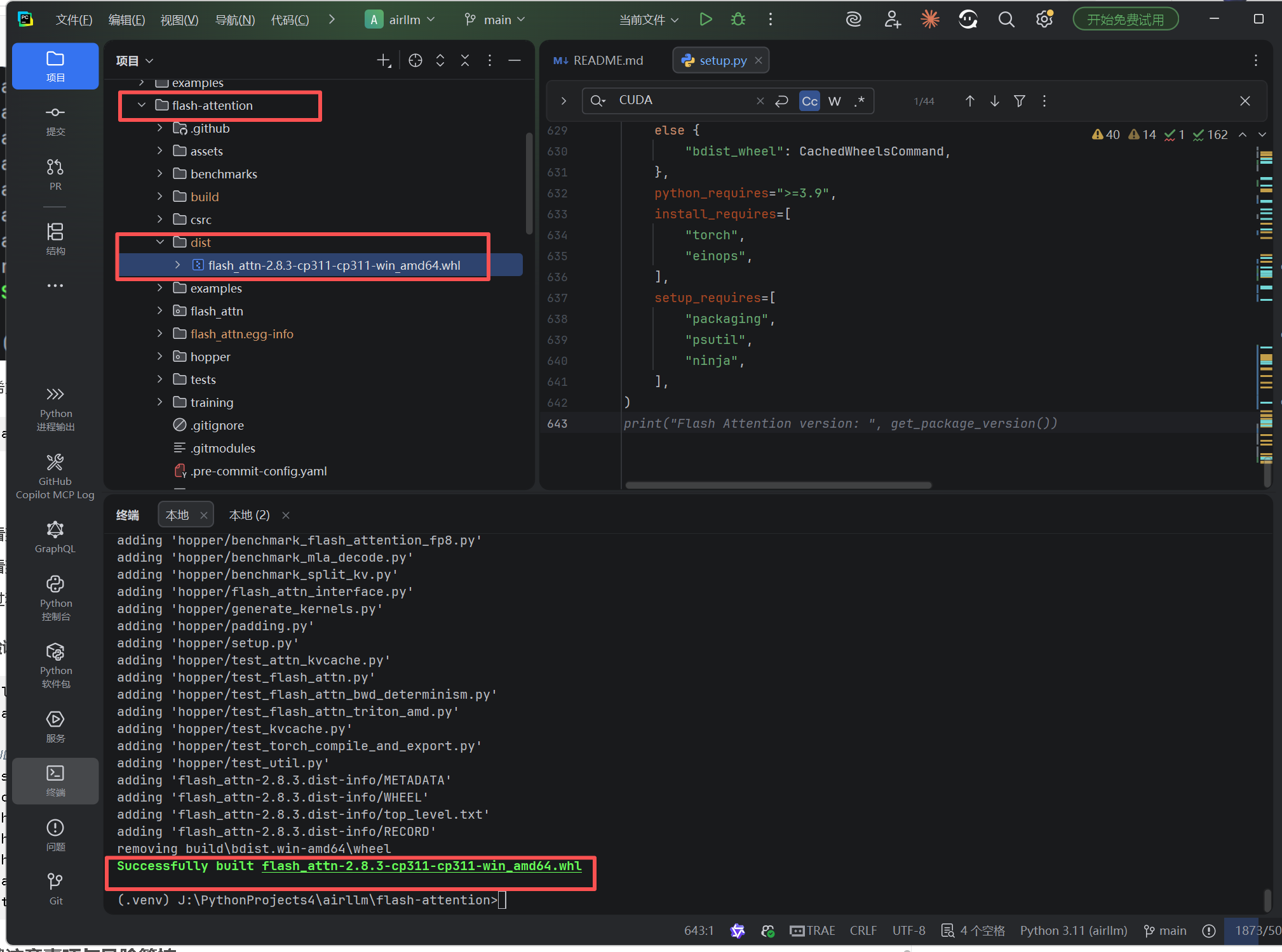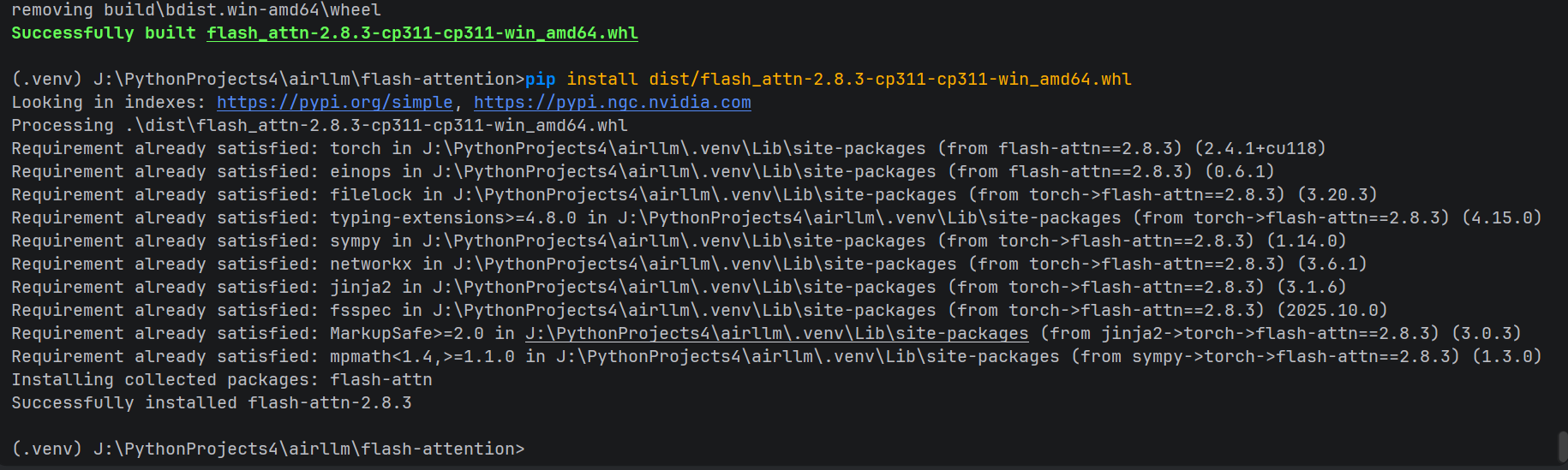 Windows 11 下再次成功本地编译 Flash-Attention 2.8.3 并生成自定义 Wheel(RTX 3090 sm_86 专属版)