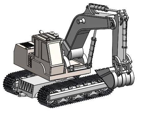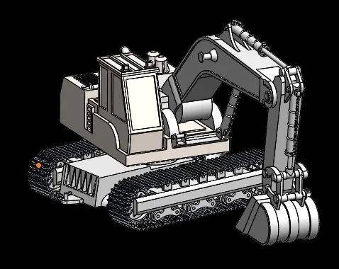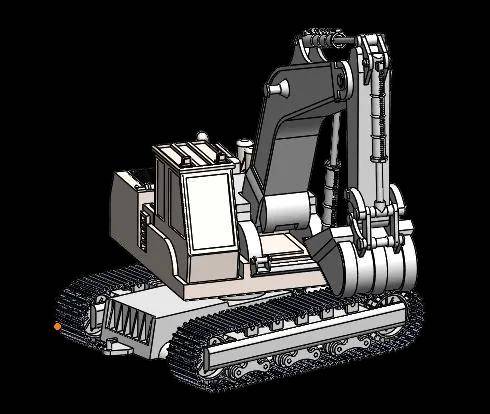 如图所示挖掘机(模型已经事先装配完成)。下面,就让我们通过鼠标拖拽零部件到相应位置,实现动画的创作!